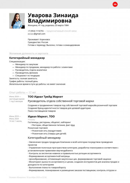 Начальник отдела продаж по г.Кореновску, ХБ "Нева"